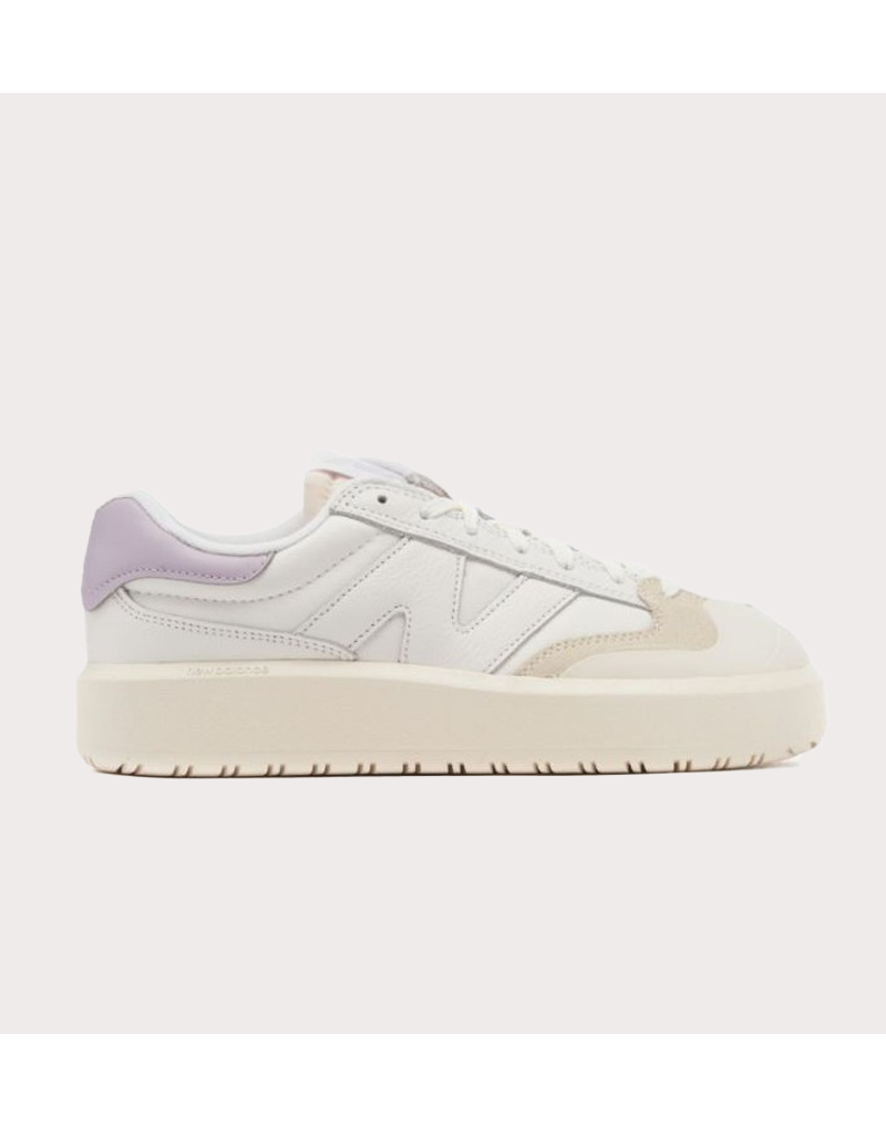 Cor: Branco com detalhe em lilás e bege.